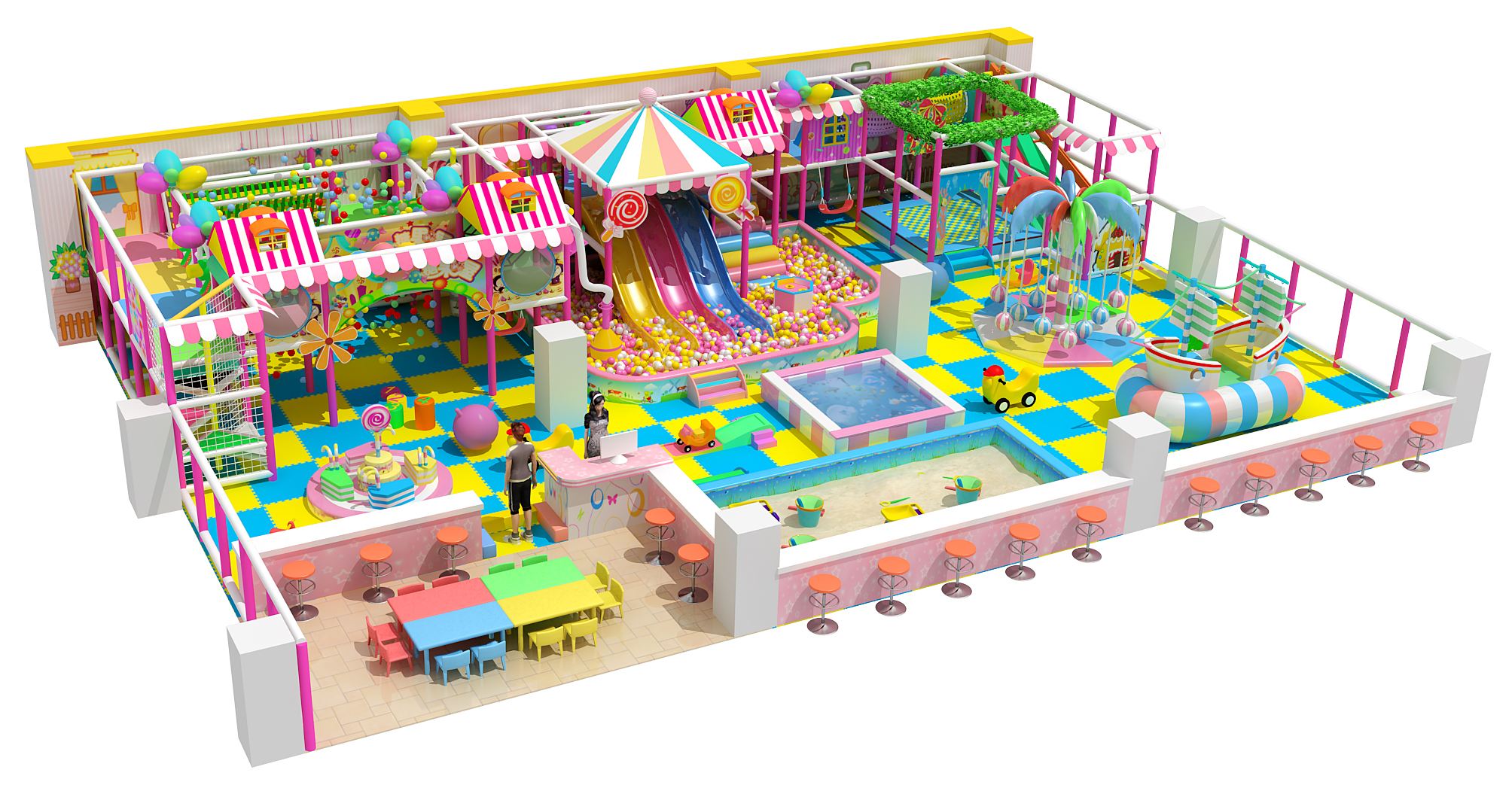 此外,每天都要進(jìn)行全面消毒,保證室內(nèi)兒童游樂場的清潔,讓家長真正放心,孩子們可以安心玩耍。